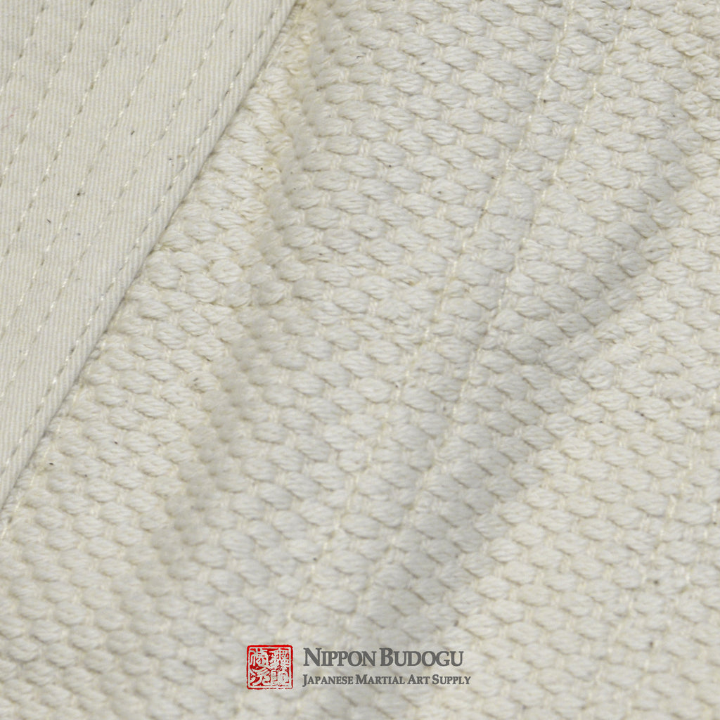 This is our single weaved Judo gi, made of 100% cotton. The cotton is unbleached to leave an natural color and is not pre-shrunk. The top is reinforced in the shoulder and chest regions. While the pants are reinforced at the knees with a quilted patch. These are to ensure durability for vigorous training and practice. All pants will come with a classic drawstring at the waist. The set includes a top, pants, and a white belt.